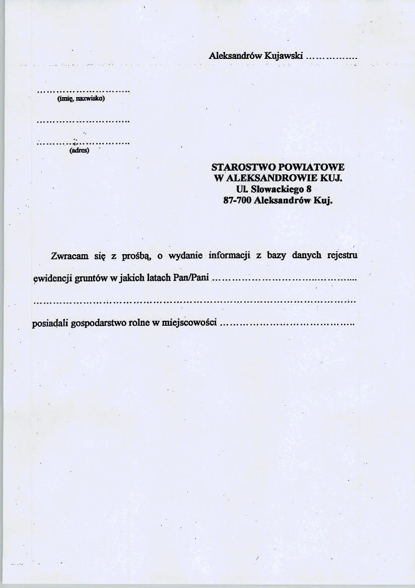 Ewidencja Gruntów i Budynków - Wymagane dokumenty wniosek o potwierdzenie istnienia gospodarstwa rolnego